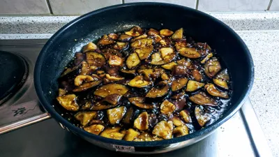 Das fertige essen passt super zu Reis und kann mit geröstetem Sesam und Shichimi-Tōgarashi verfeinert werden.