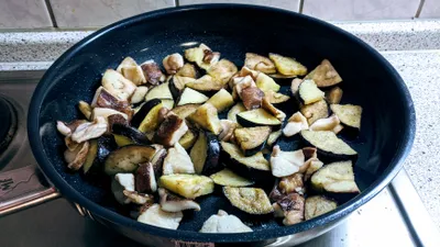 Eine Pfanne mit Öl erhitzen und das Gemüse hinzugeben, und ab und zu wenden.